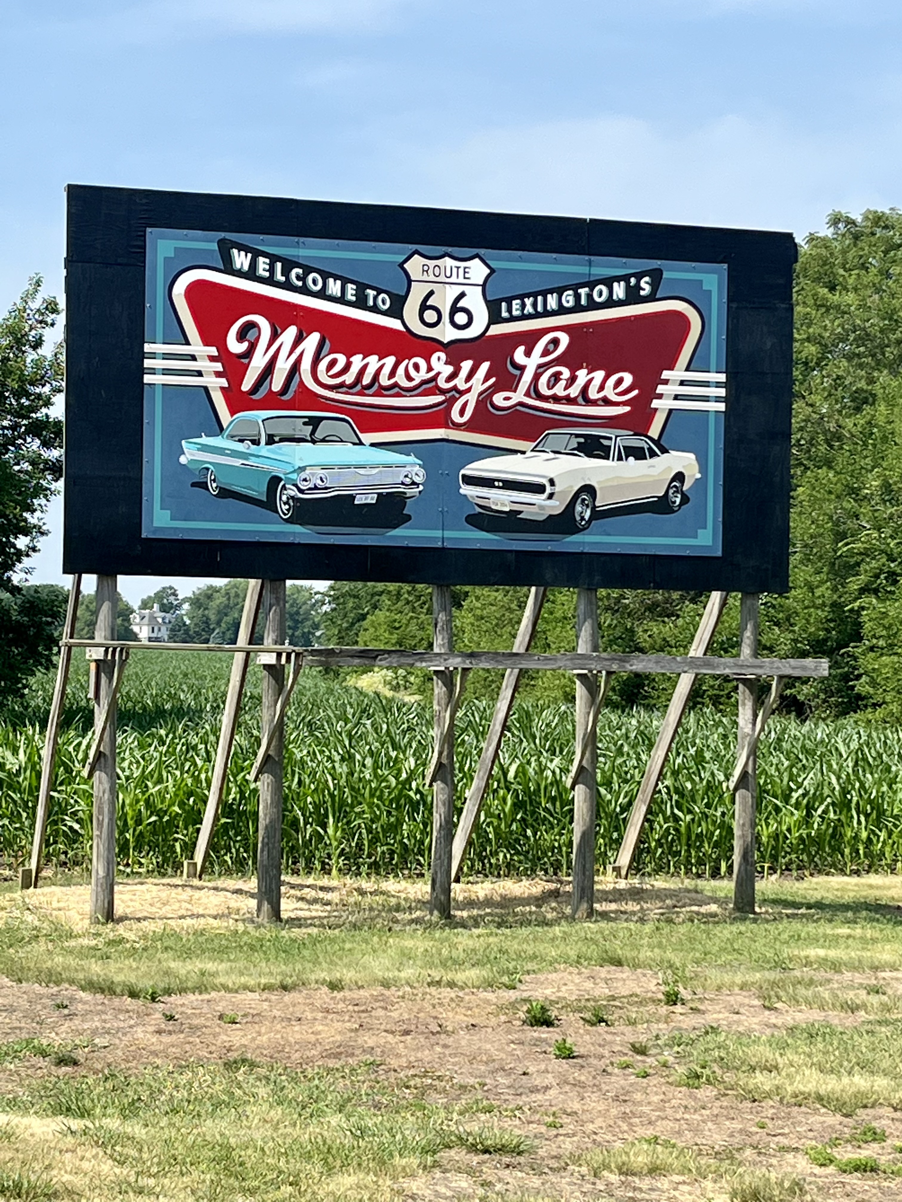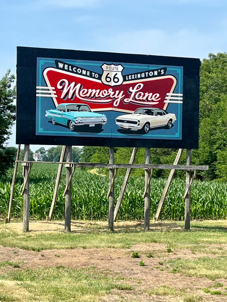 Memory Lane is located near Lexington, Illinois. It’s a one mile stretch of 1926 pavement lined with vintage billboards and classic Burma Shave signs. You can walk it at any time, but they only open Memory Lane to car traffic during certain days of the year.