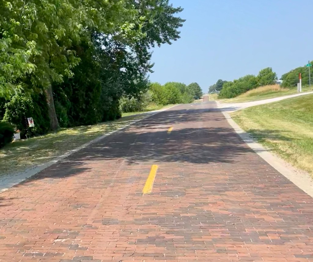 This quest for these old, quiet roads led me to the turkey tracks and later to a mile and half section paved in red brick surrounded by farmland. Eventually it even took us on a trip down Memory Lane.